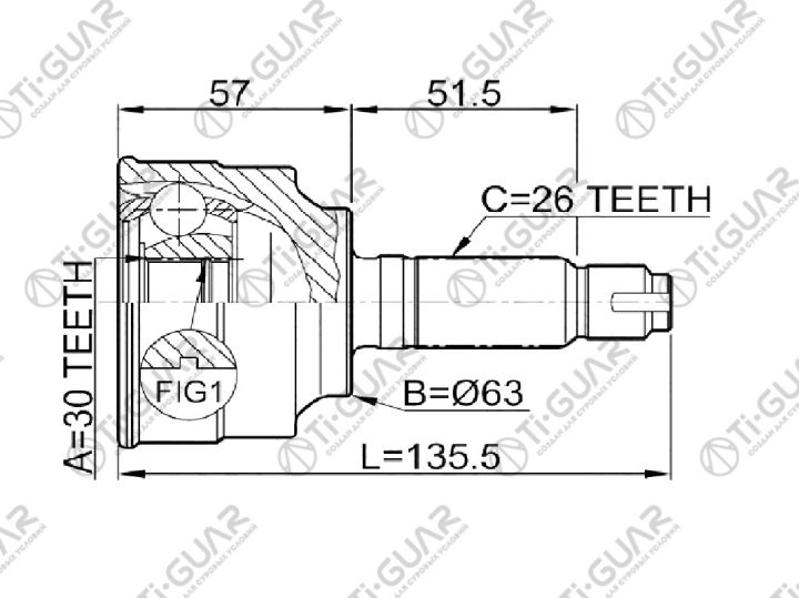 ШРУС наружный /TI-GUAR для Honda Accord (CL7) 2003-2006 Civic (FD2) 2006- K20A7/K24A4; 30*63*26; TG-4460; (HO-060) 44305SDET00 44305SDCA00 44014SNG000